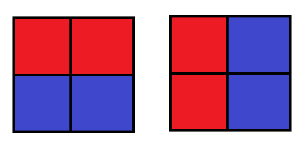 很容易想到,对于一个 $2 \times 2$ 的部分只有两种填法: